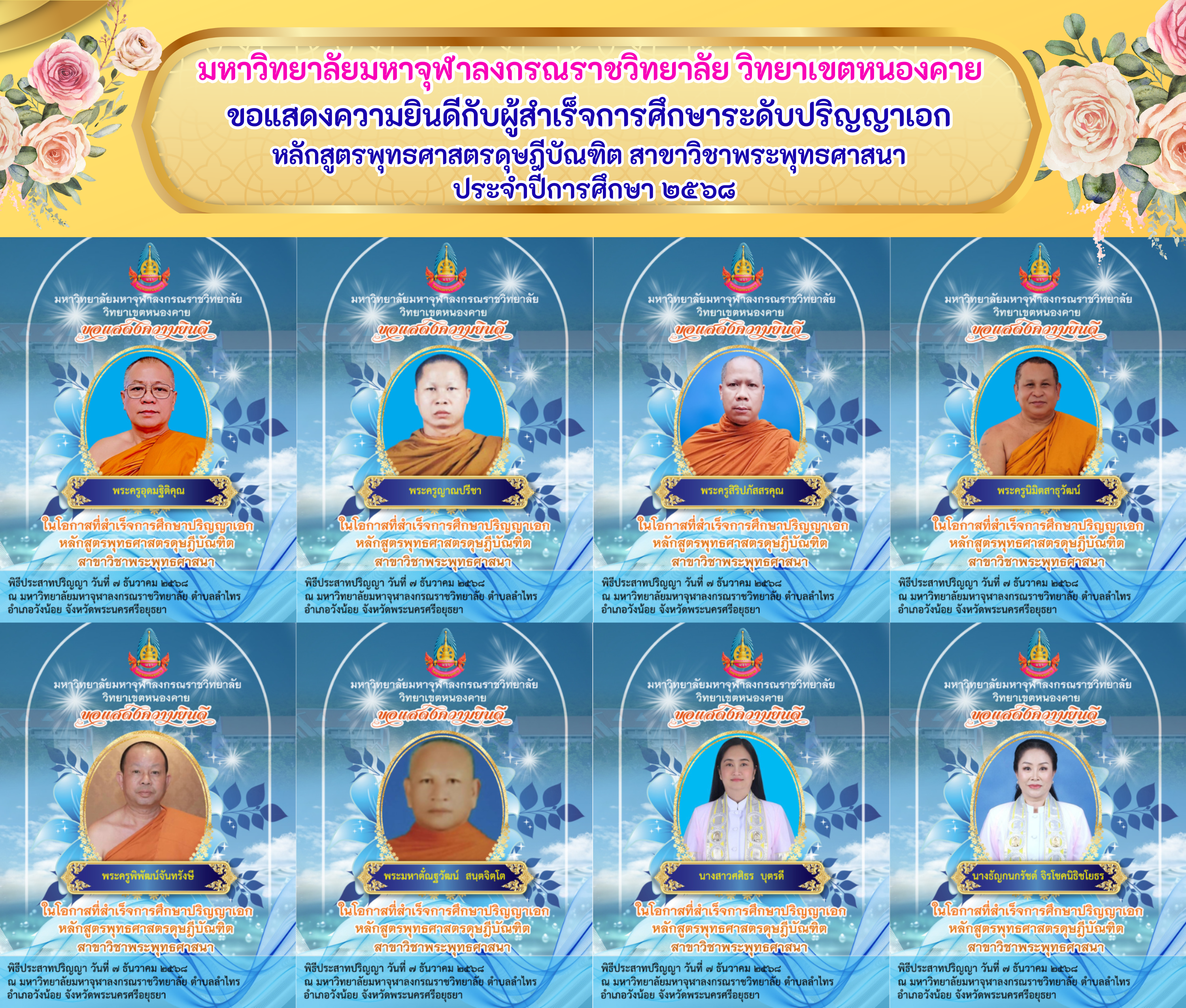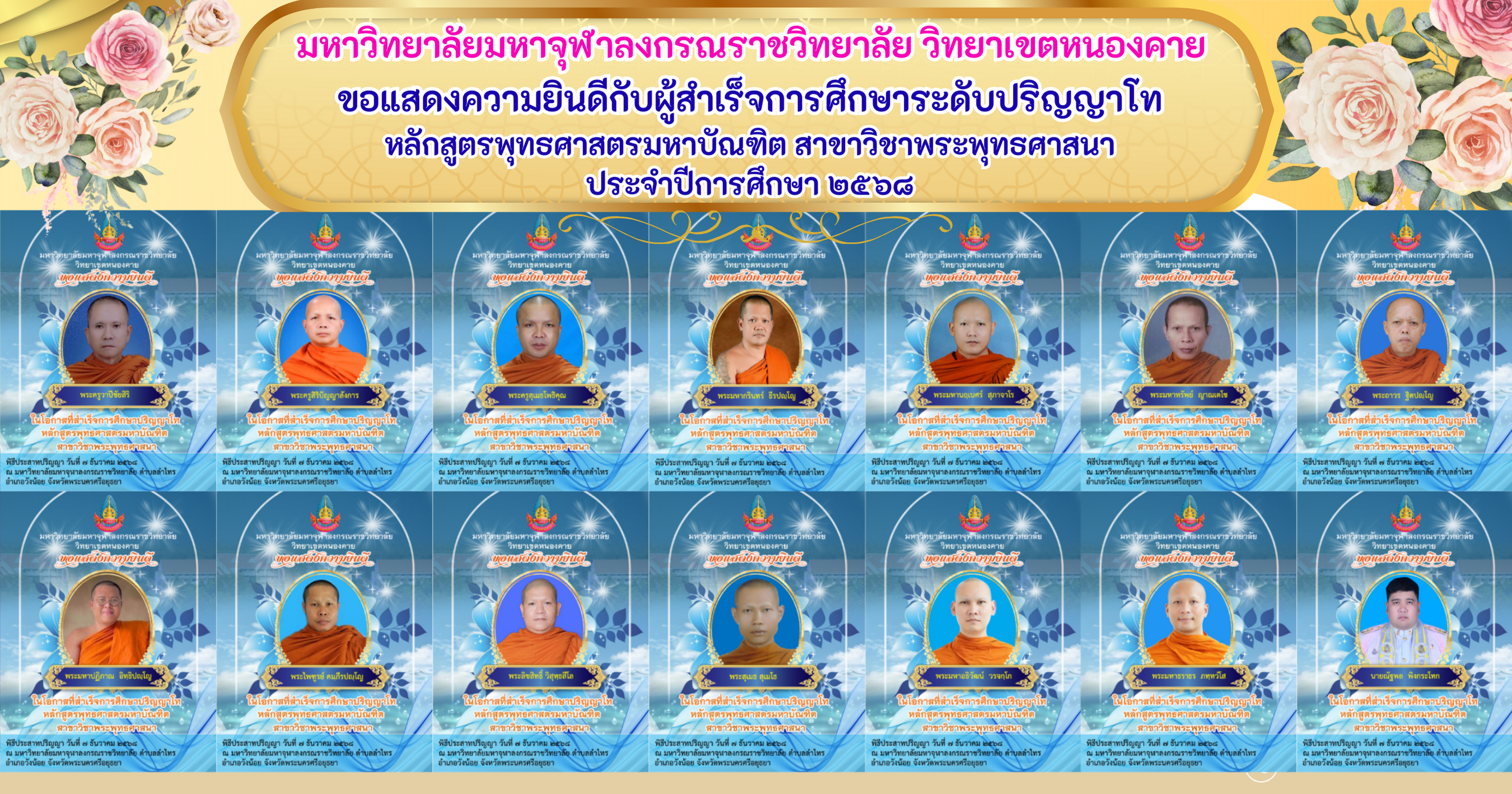 ประกาศ มหาวิทยาลัยมหาจุฬาลงกรณราชวิทยาลัย วิทยาเขตหนองคาย เรื่อง รายชื่อผู้มีสิทธิ์รายงานตัวเข้าศึกษาระดับปริญญาตรี และระดับประกาศนียบัตร ประจำปีการศึกษา ๒๕๖๘