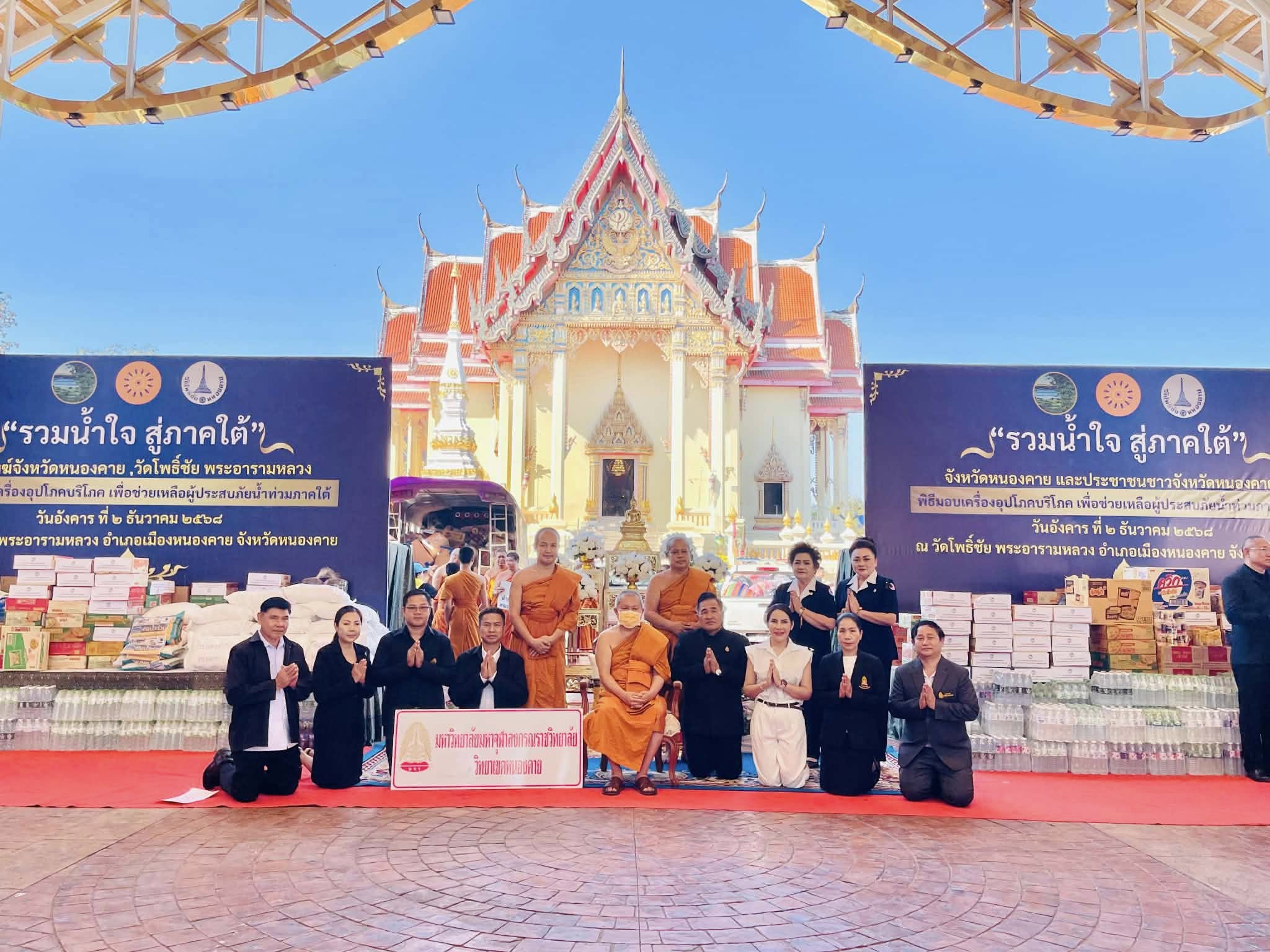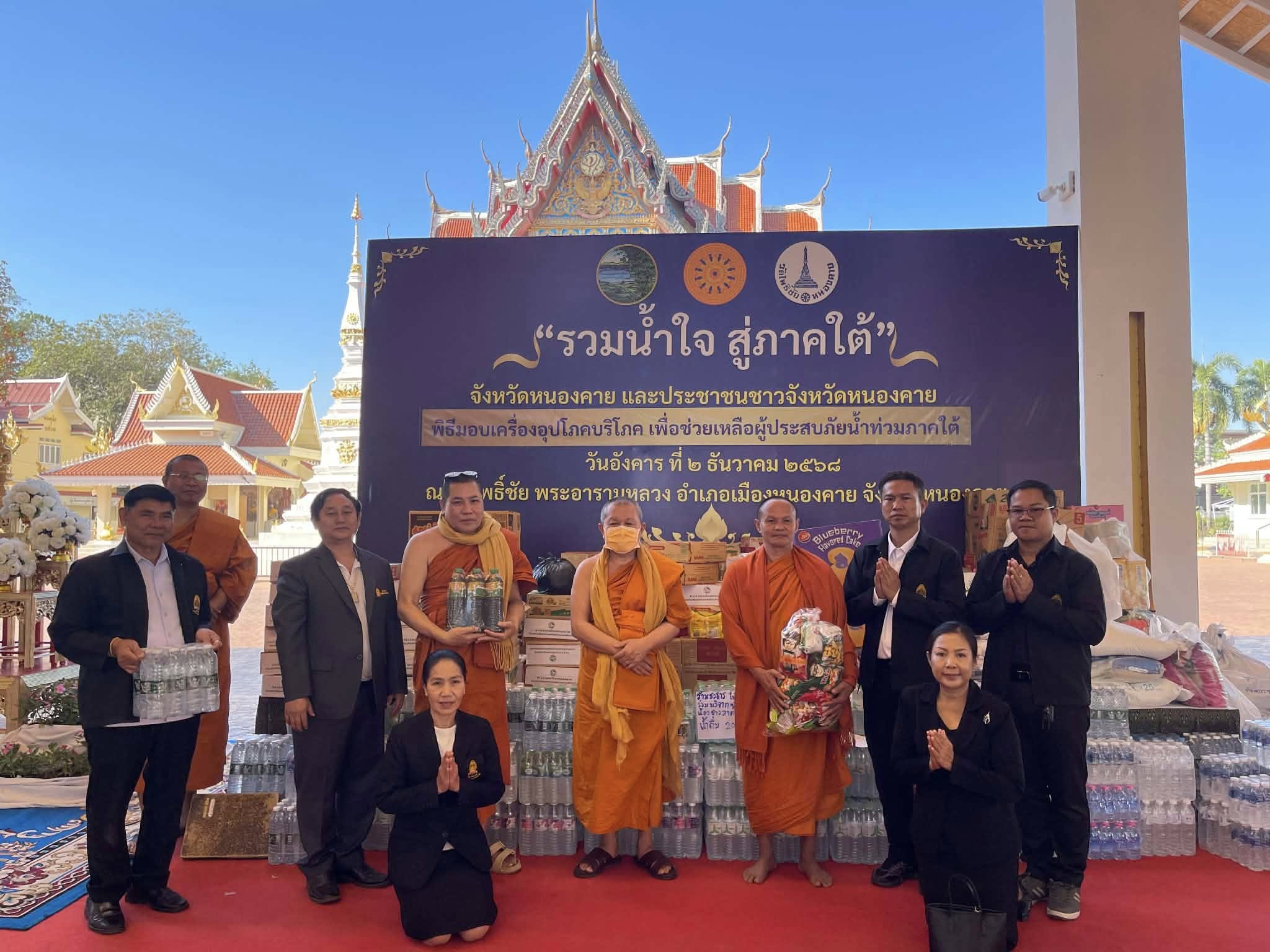 มจร วิทยาเขตหนองคาย ร่วมน้ำใจ สู่ภาคใต้ : จังหวัดหนองคาย ร่วมกับคณะสงฆ์จังหวัดหนองคาย วัดโพธิ์ชัย พระอารามหลวง จังหวัดหนองคาย จัดพิธีมอบเครื่องอุปโภคบริโภค เพื่อช่วยเหลือผู้ประสบภัยน้ำท่วมภาคใต้