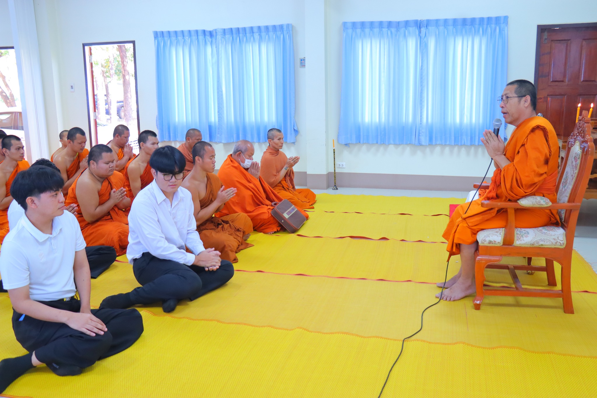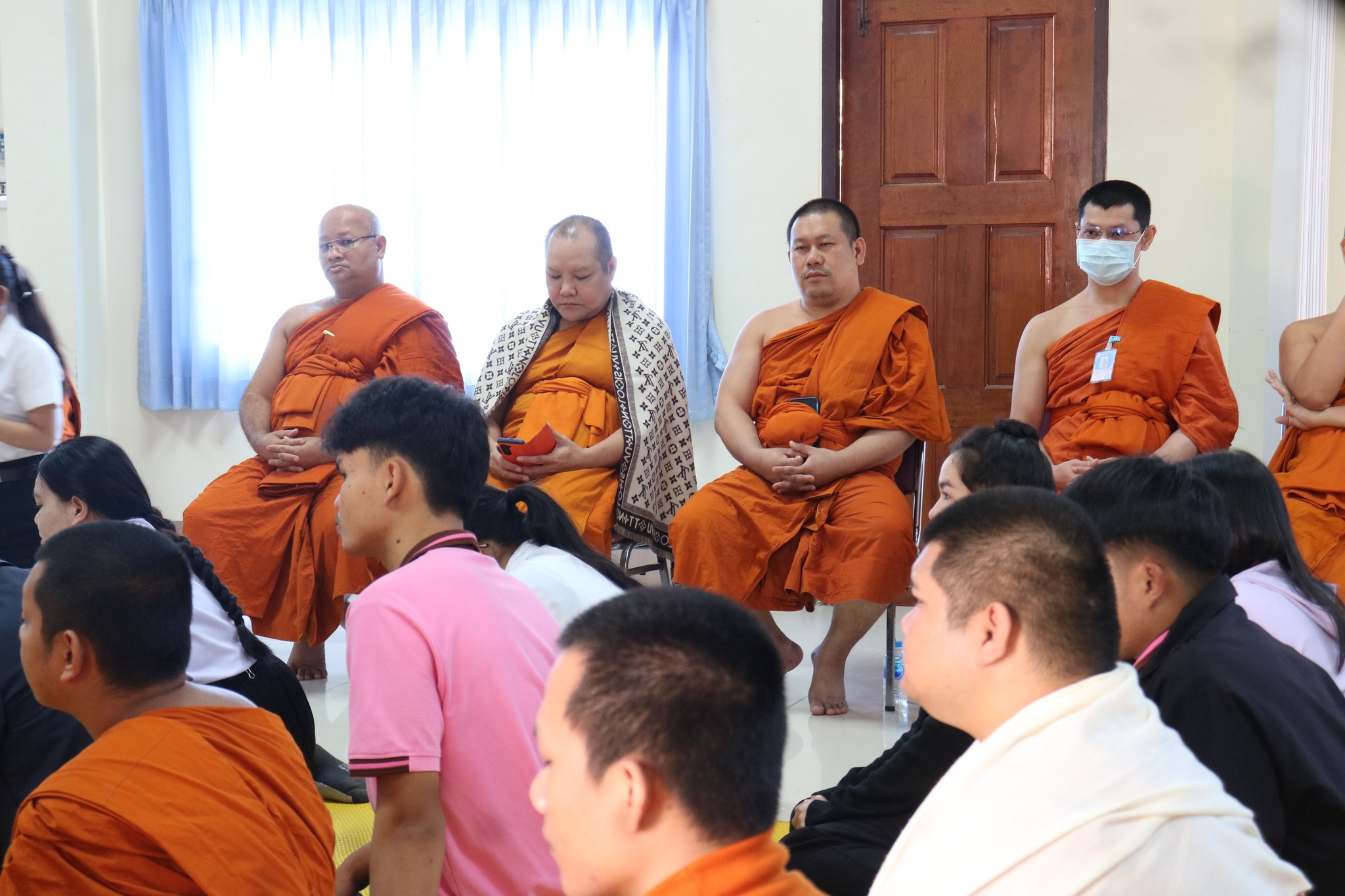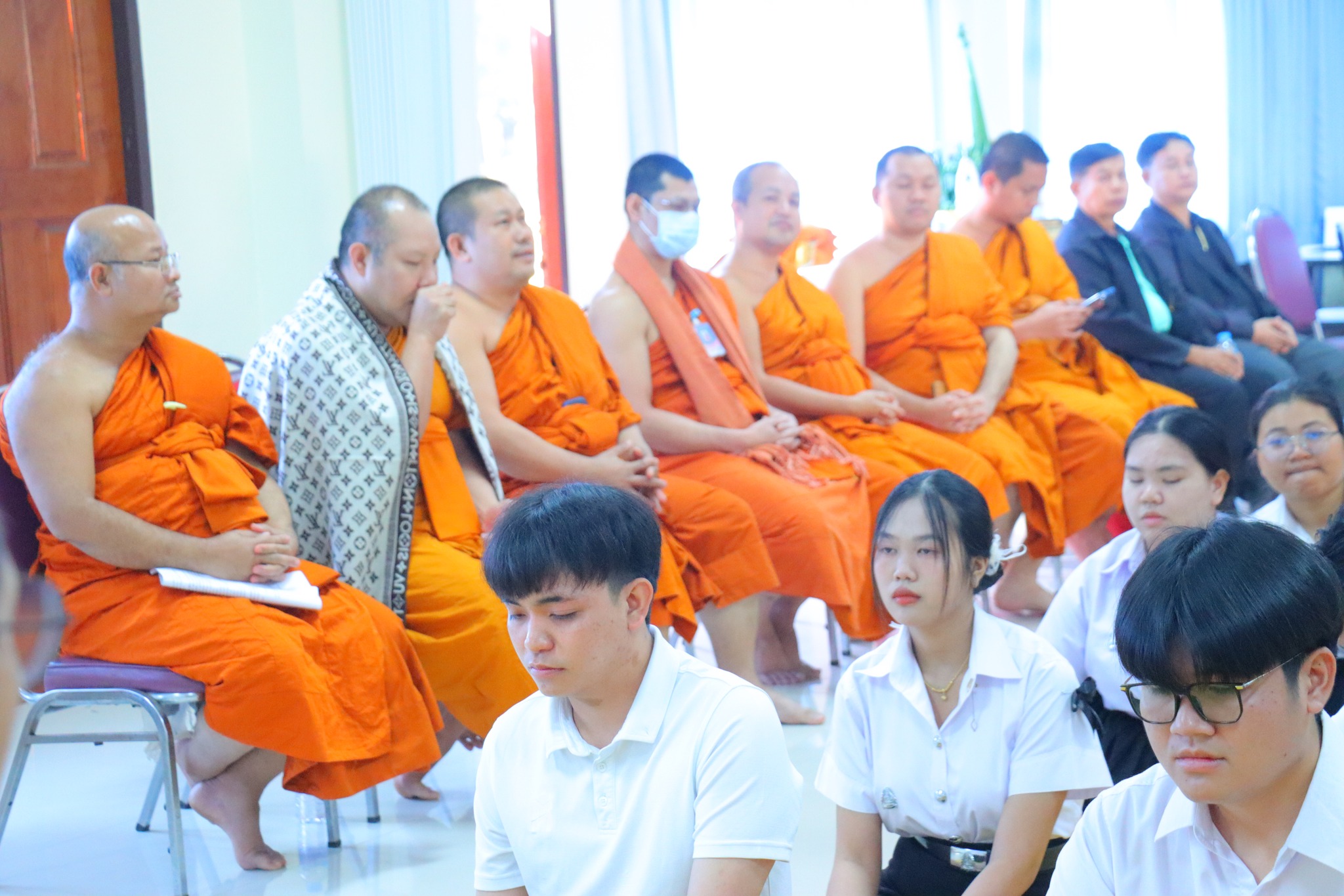 #คณะครุศาสตร์ จัดกิจกรรม “ผ้าขาวม้าผูกใจ บายศรี สานสัมพันธ์ ครูสังคมศึกษา” (ชุดที่ ๓) วันพุธ ที่่ ๓ ธันวาคม ๒๕๖๘ เวลา ๐๙.๐๐ น. __.#พระมหาสมเด็จ มหาสมิทฺธิ,ผศ.ดร. ผู้อำนวยการวิทยาลัยสงฆ์หนองคาย เป็นประธานกล่าวเปิดกิจกรรม “ผ้าขาวม้าผูกใจ บายศรี สานสัมพันธ์ ครูสังคมศึกษา” และกล่าวให้โอวาทแก่นิสิตคณะครุศาสตร์ที่เข้าร่วมกิจกรรม โดยมีวัตถุประสงค์ เพื่อความสามัคคีภายในสาขา เพื่อความรัก และเคารพซึ่งกันและกัน ณ อาคาร ๕ พระสุนทรธรรมธาดา (บุญเลิศ เขมปญฺโญ) มหาวิทยาลัยมหาจุฬาลงกรณราชวิทยาลัย วิทยาเขตหนองคาย