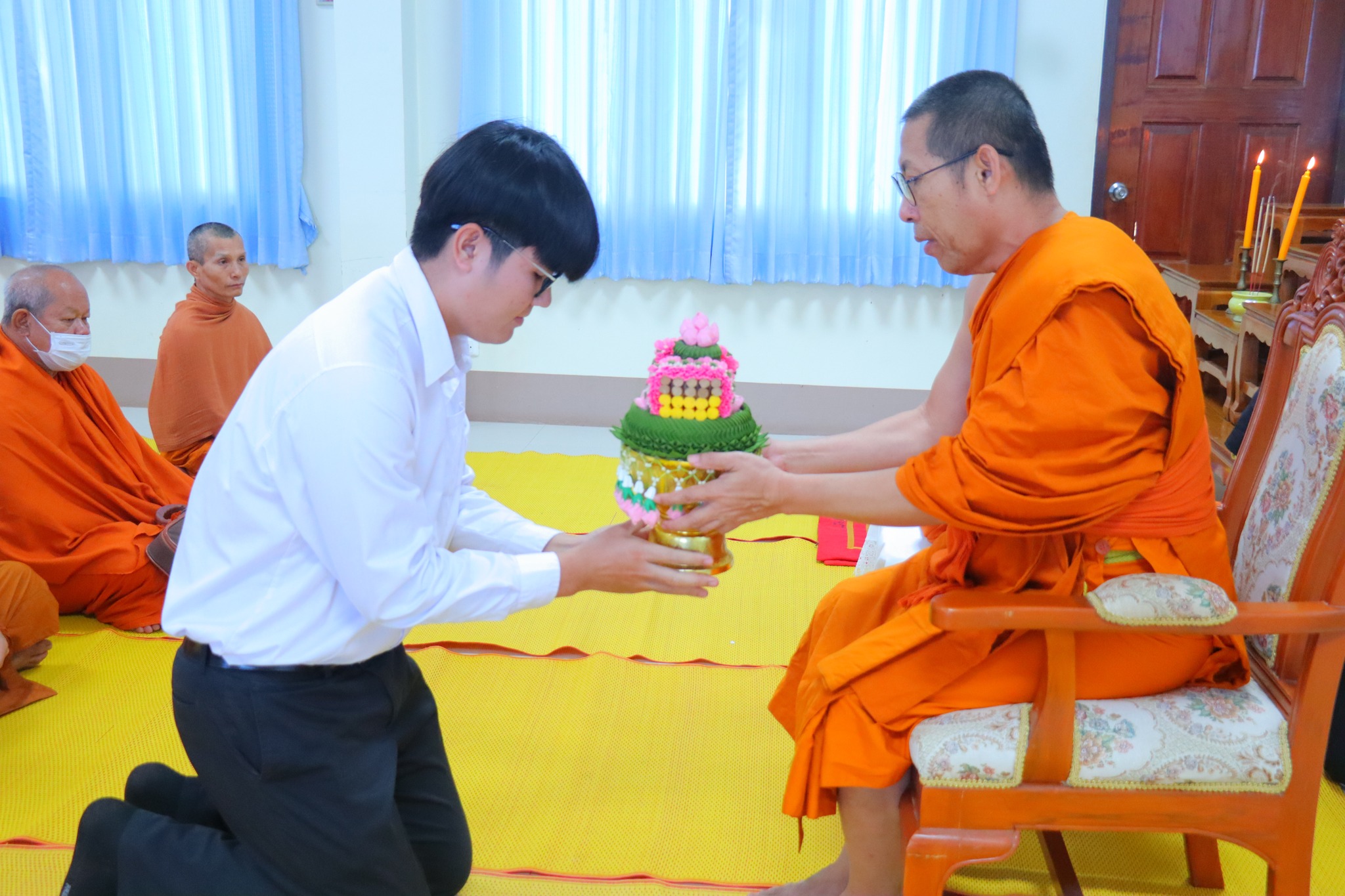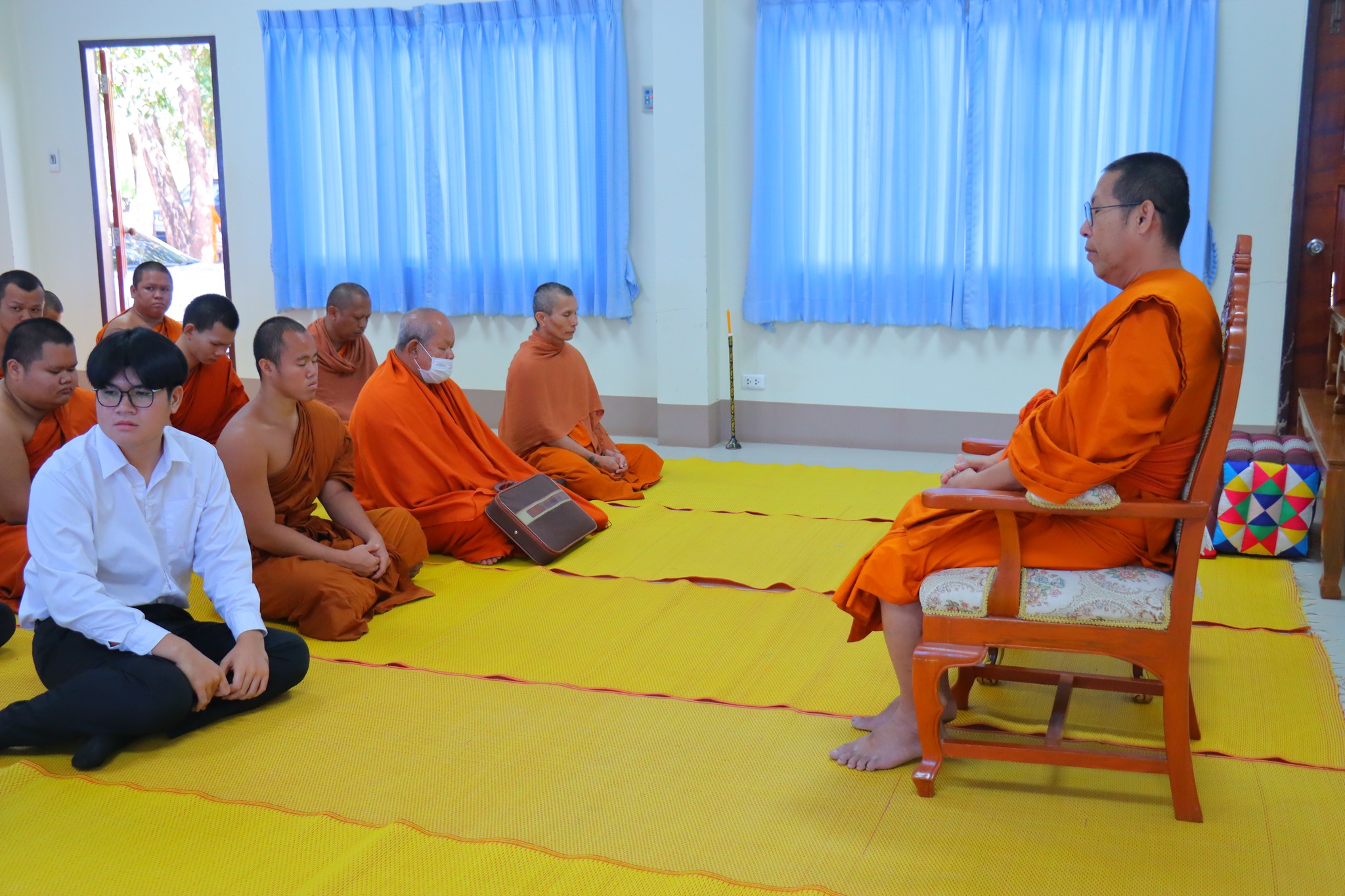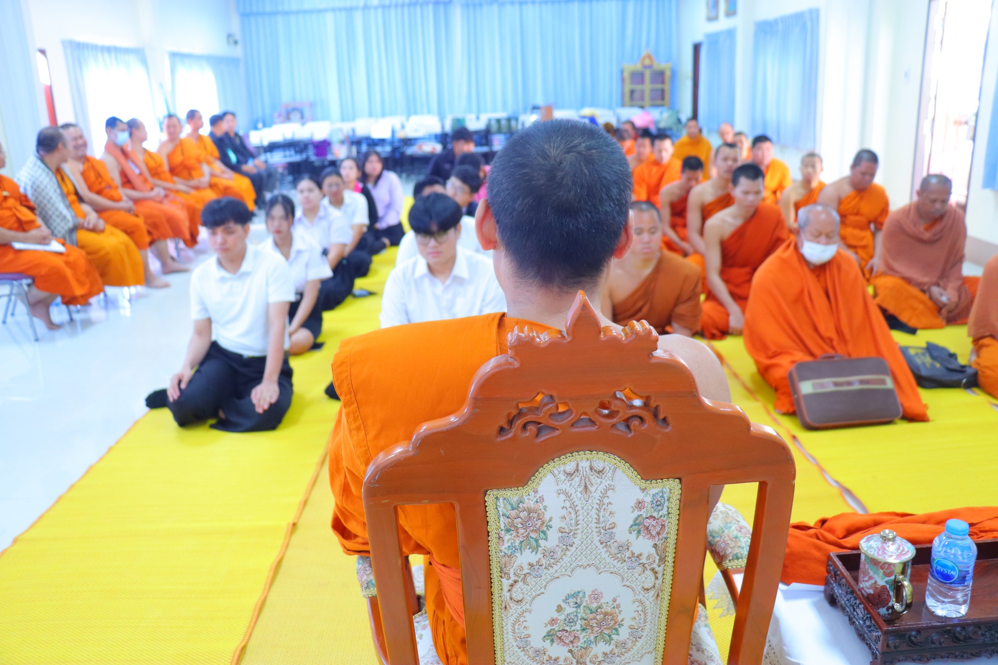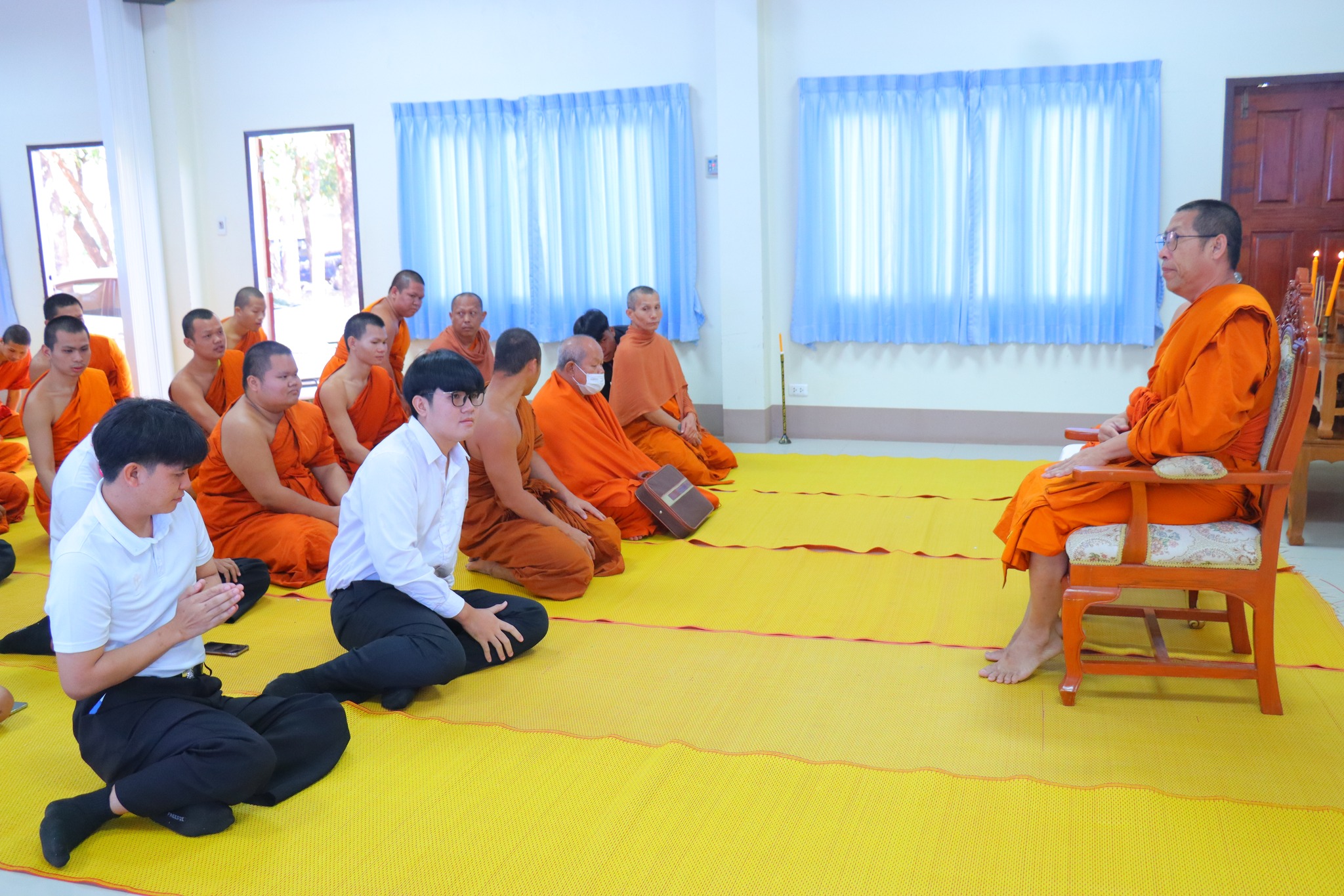 #คณะครุศาสตร์ จัดกิจกรรม “ผ้าขาวม้าผูกใจ บายศรี สานสัมพันธ์ ครูสังคมศึกษา” (ชุดที่ ๓) วันพุธ ที่่ ๓ ธันวาคม ๒๕๖๘ เวลา ๐๙.๐๐ น. __.#พระมหาสมเด็จ มหาสมิทฺธิ,ผศ.ดร. ผู้อำนวยการวิทยาลัยสงฆ์หนองคาย เป็นประธานกล่าวเปิดกิจกรรม “ผ้าขาวม้าผูกใจ บายศรี สานสัมพันธ์ ครูสังคมศึกษา” และกล่าวให้โอวาทแก่นิสิตคณะครุศาสตร์ที่เข้าร่วมกิจกรรม โดยมีวัตถุประสงค์ เพื่อความสามัคคีภายในสาขา เพื่อความรัก และเคารพซึ่งกันและกัน ณ อาคาร ๕ พระสุนทรธรรมธาดา (บุญเลิศ เขมปญฺโญ) มหาวิทยาลัยมหาจุฬาลงกรณราชวิทยาลัย วิทยาเขตหนองคาย