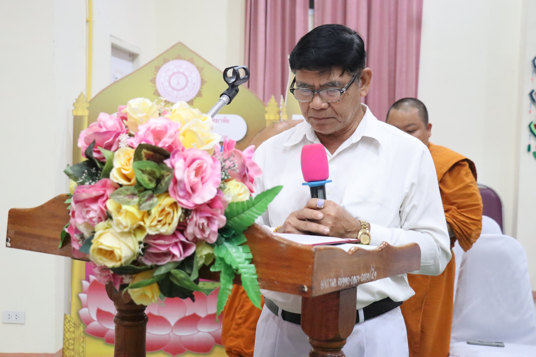 __.#พระเดชพระคุณพระเทพวชิรคุณ, รศ.ดร. เจ้าคณะจังหวัดหนองคาย จล.วัดโพธิ์ชัย ประธานสภา มจร วิทยาเขตหนองคาย เป็นประธานฝ่ายสงฆ์ นายพิเชษฐศ์ ตันเทิดทิตย์ รองนายกองค์การบริหารส่วนจังหวัดหนองคาย เป็นประธานฝ่ายคฤหัสถ์ และกล่าวเปิดโครงการ และมอบเงินสนับสนุนโครงการ จำนวน 350,000 บาท (สามแสนห้าหมื่นบาทถ้วน) #พระภาวนาวัชรมุนี, ดร. รองอธิการบดี มจร วิทยาเขตหนองคาย บรรยายพิเศษ ในพิธีเปิดโครงการปฏิบัติวิปัสสนากัมมัฏฐาน และโครงการฝึกอบรมและพัฒนาคุณธรรมจริยธรรมสำหรับนิสิต ประจำปี ๒๕๖๘ และมอบตัวนิสิตแก่พระวิปัสสนาจารย์ โดยมีวัตถุประสงค์ส่งเสริมให้นิสิตและประชาชนมีคุณธรรมและจริยธรรม เพื่อให้ประชาชนในจังหวัดหนองคายและประเทศชาติเกิดความสงบสุข