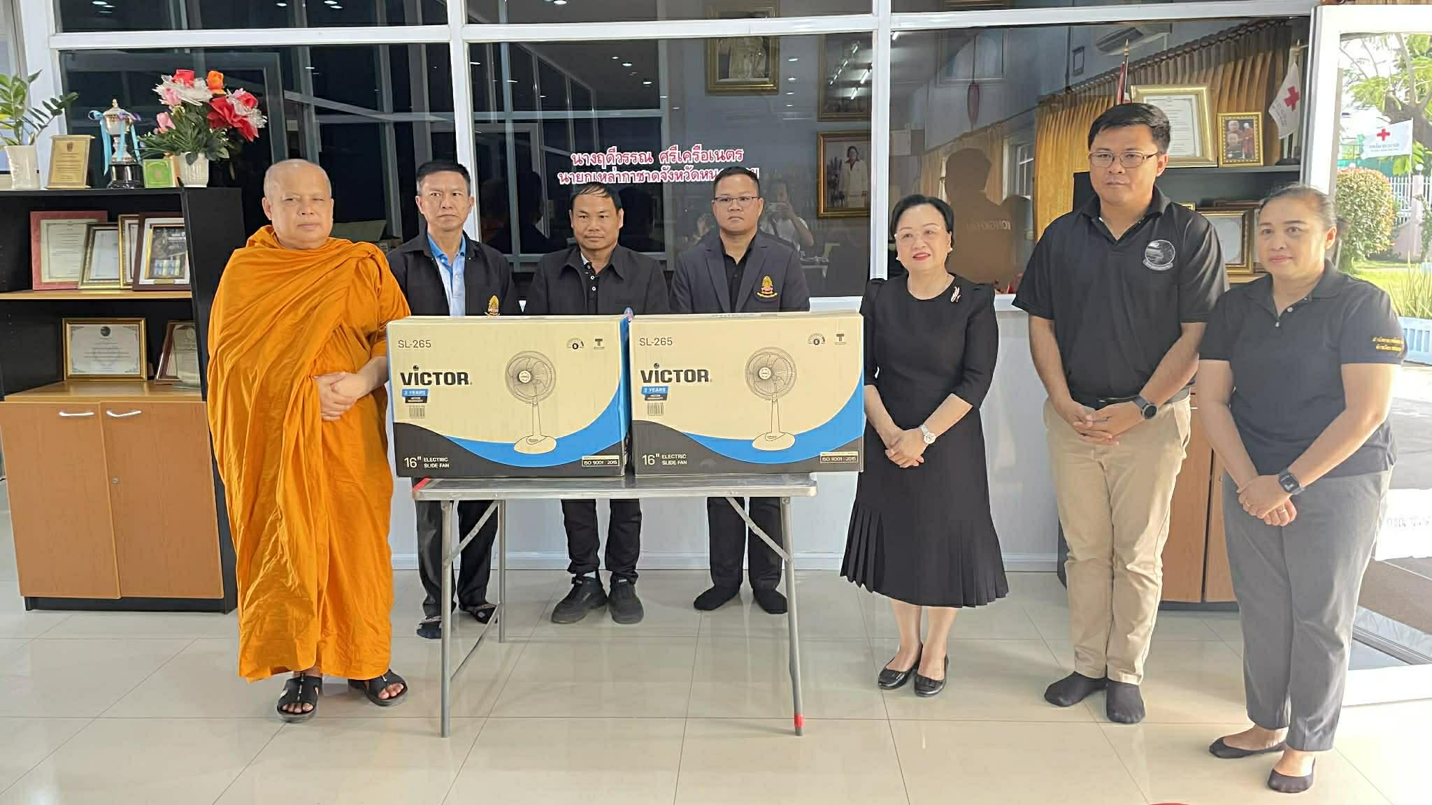 ในนาม มหาวิทยาลัยมหาจุฬลงกรณราชวิทยาลัย วิทยาเขตหนองคาย พระภาวนาวัชรมุนี ดร. รองอธิการบดี มจร วิทยาเขตหนองคาย เจ้าคณะอำเภอเมืองหนองคาย ผู้ช่วยเจ้าอาวาสวัดโพธิ์ชัย พระอารามหลวง และคณะ มอบพัดลมจำนวน ๒ เครื่อง ให้แก่สำนักงานเหล่ากาชาดจังหวัดหนองคาย เพื่อนำไปเป็นรางวัลในงานฉลองอนุสาวรีย์ปราบฮ่อใต้ร่มพระบารมี และงานกาชาด พ.ศ. ๒๕๖๙ จังหวัดหนองคาย ระหว่างวันที่ ๕-๑๓ มีนาคม ๒๕๖๙ นี้