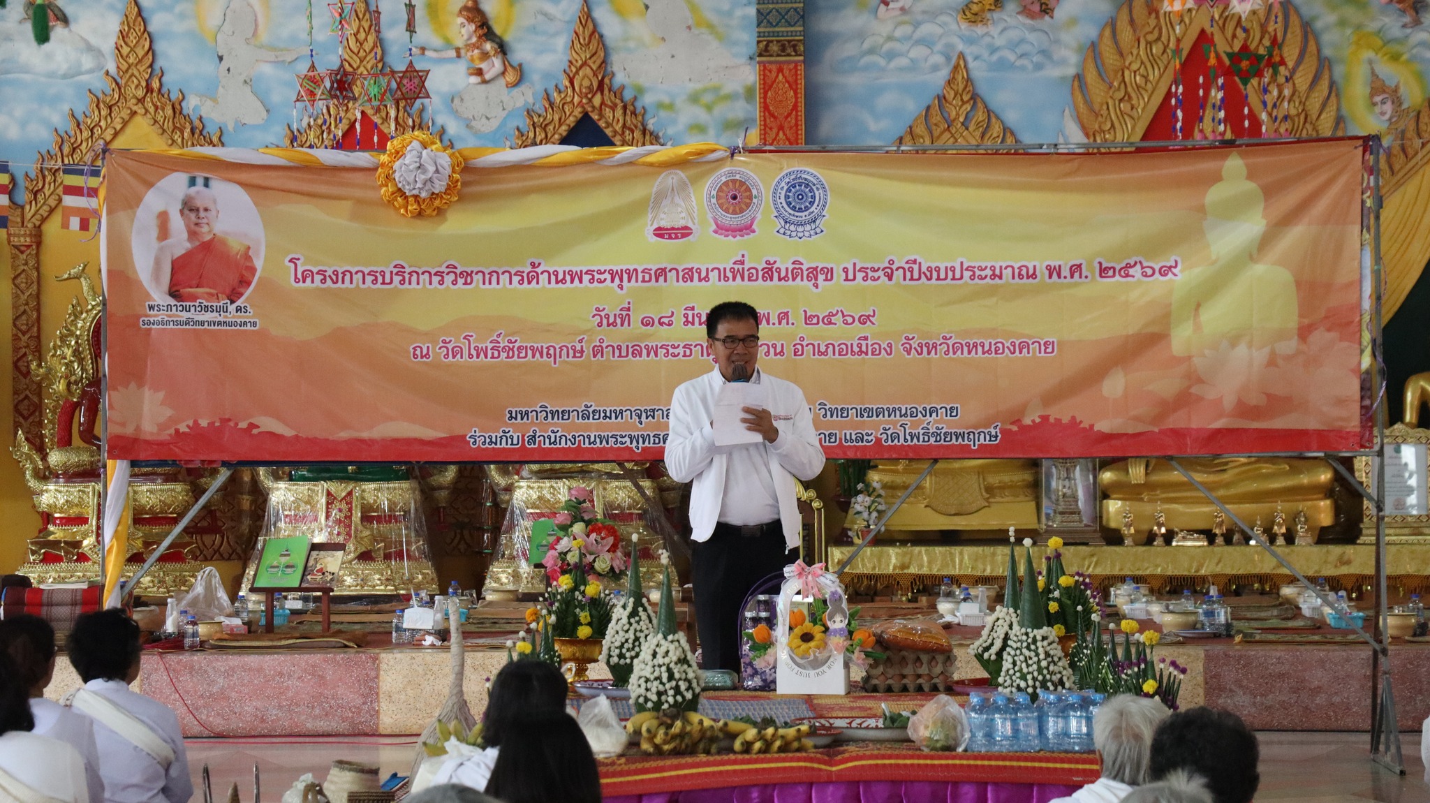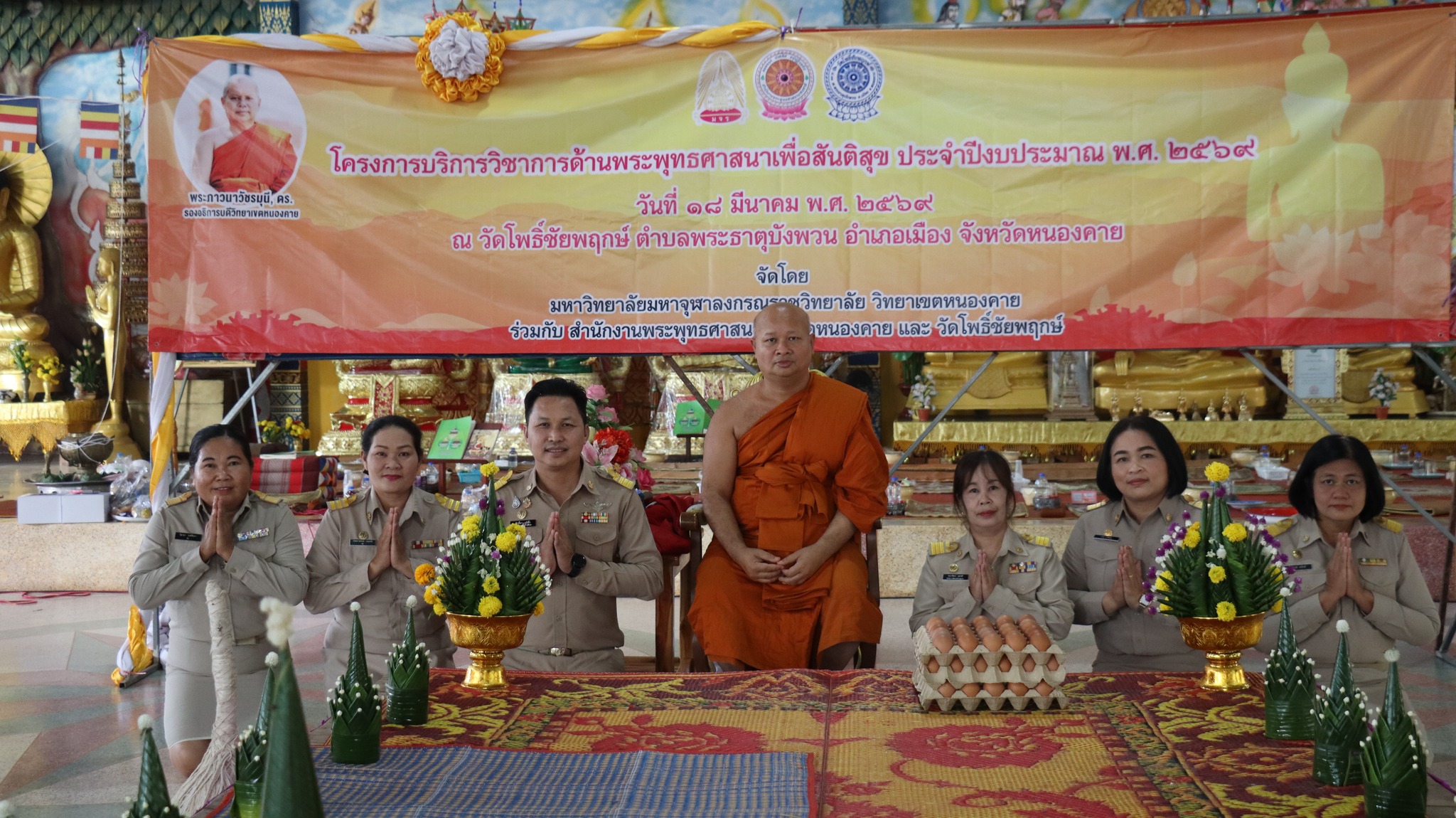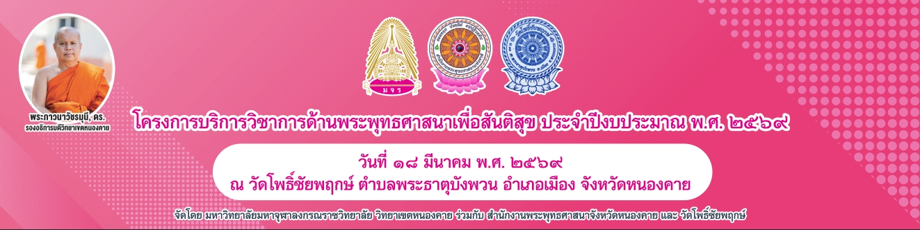 มจร วิทยาเขตหนองคาย จัดโครงการบริการวิชาการด้านพระพุทธศาสนาเพื่อสันติสุข ประจำปีงบประมาณ ๒๕๖๙ ณ วัดโพธิ์ชัยพฤกษ์ ตำบลพระธาตุบังพวน อำเภอเมือง จังหวัดหนองคาย